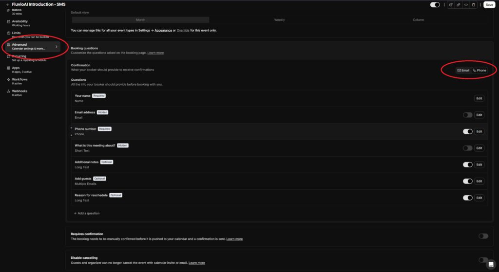 Go back to the homepage. Add a new event type and fill in all of the required information. This is the ‘event’ that the AI agent will be booking on your behalf. Name it appropriately, for example: “Discovery call”, “Initial assessment”, or “Site visit”. Whatever title best describes the event.