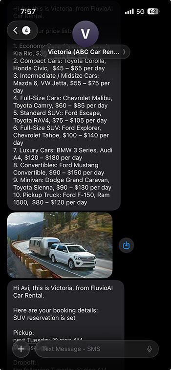 FluvioAI agents deliver advanced, real-time SMS orchestration during the conversation itself.